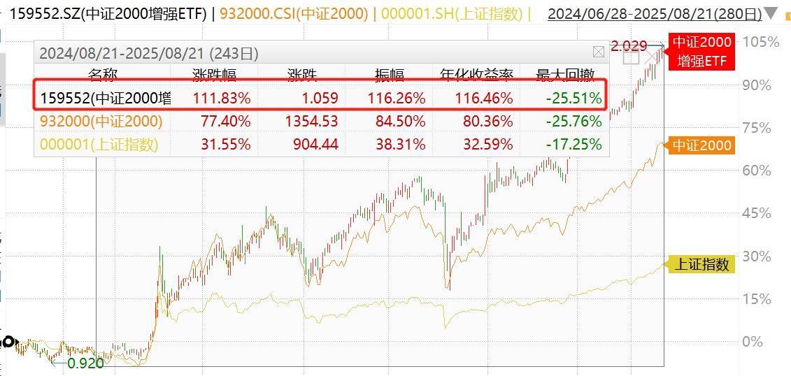 对于投资者来说,在指数高位运行、波动加大的预期下,逢跌布局增强表现出色的品种,如中证2000增强ETF(159552),或许是把握后市机会的更优策略。